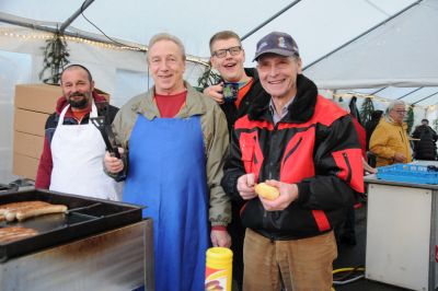 Neben an sind die Ü50ziger, sie schenken Glühwein in rot und weiß aus. Nächstes Jahr gibt es aber nur noch den Roten, da die Warteschlange zu lang wird, wenn ein neuer Topf angesetzt werden muss. Hier gibt es keine Fertigware!! Nur gute Zutaten, so entsteht ein Spitzen Glühwein, dem nur noch ein zusätzlicher Amaretto mehr Umdrehungen verleihen kann.