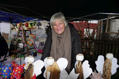 Frau Hieß- Mestermann ist Strickfan, bietet aber auch noch Altbewährtes an.Holzengel, Keramik, Steckenpferde und vieles mehr. Da kann jeder das Passende für seine Lieben finden.