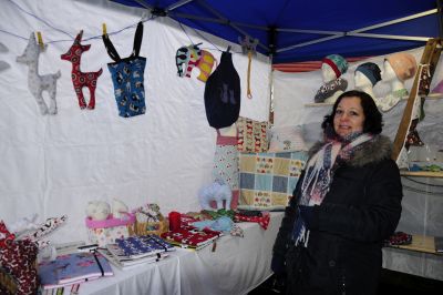 Frau Petra Schäfer: Aus Schönen Jerseystoffen gefertigte Decken, Taschen ,Mützen und sogar Stoffelche wurden hier angeboten.