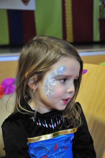 Kinderschminken macht Spaß.Bei den Mädchen ist eindeutig die Eis-oder Schneekönigin als Gesichtsstyling gefragt.Es darf auch mal ein Einhorn sein.