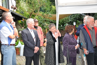 Die Ausstellung im Hof wird von Herrn Hofnagel eröffnet, auch Gerhard Wittmeyer vom Vorstand der Kunst und Kulturstiftung ist dabei.