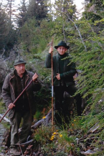 „Das ist mein Onkel, er ist selbst Jäger und er schenkte mir meinen ersten Jägerhut. Manfred und auch seine Frau sind sehr gute Freunde für mich und meine Familie geworden. Meine Eltern unterstützen mein Hobby natürlich auch und so wurde mir mit der Zeit die notwendige Ausrüstung zu Festen geschenkt. Von Manfred bekam ich mein Jagdmesser. In diesen Sommer- Ferien durfte ich mit ihm nach Österreich, Hermagor, ins Gailtal zur Gams Jagd fahren, für mich ein tolles Erlebnis.“